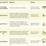 • Olive Pomace Oil – Extracted from pressed olive pulp, highly refined, olive pomace oil has the least olive flavor, but the highest heat stability. Best for deep frying or food manufacturing.